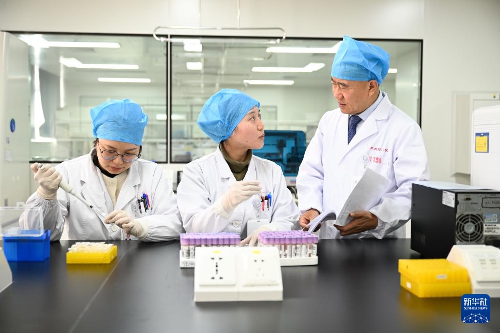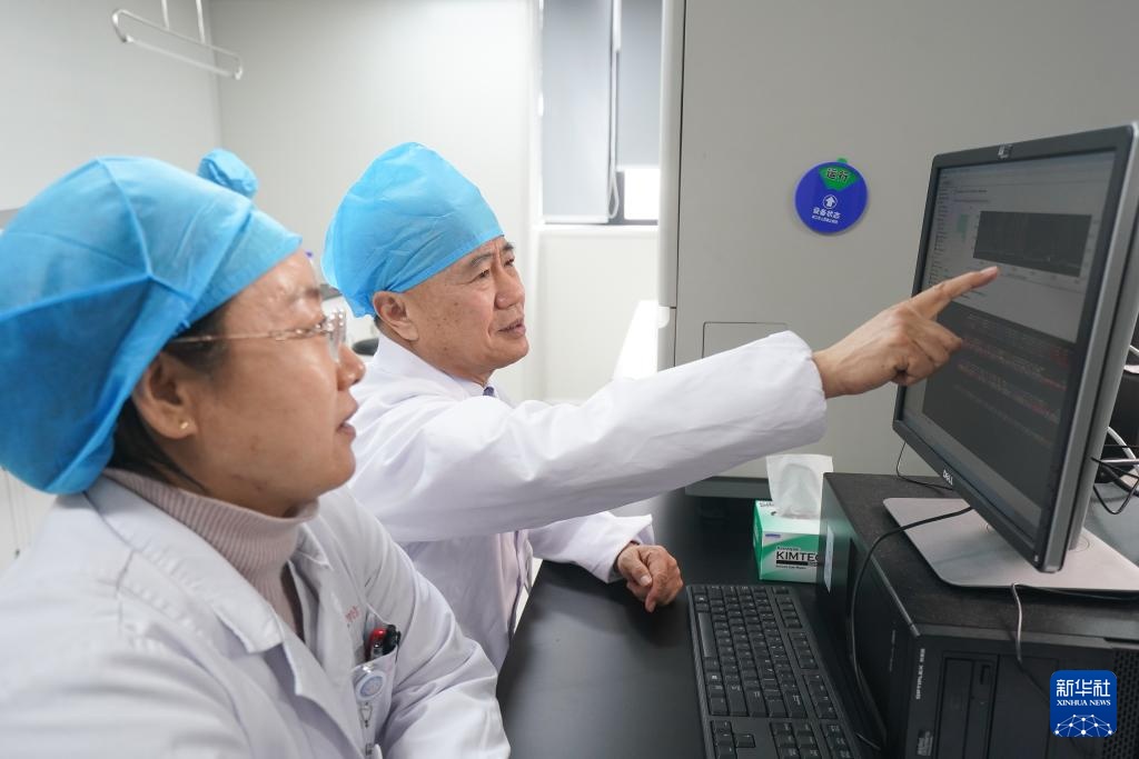 在位于苏州大学附属第一医院的国家血液系统疾病临床医学研究中心HLA配型实验室,吴德沛和研究人员一起分析供受者HLA配型结果(2025年2月17日摄)。新华社记者 季春鹏 摄