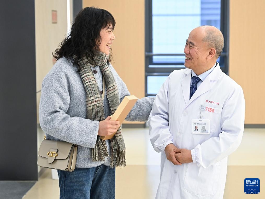 24年前获得救治的患者来到医院看望吴德沛(2025年2月17日摄)。新华社记者 季春鹏 摄