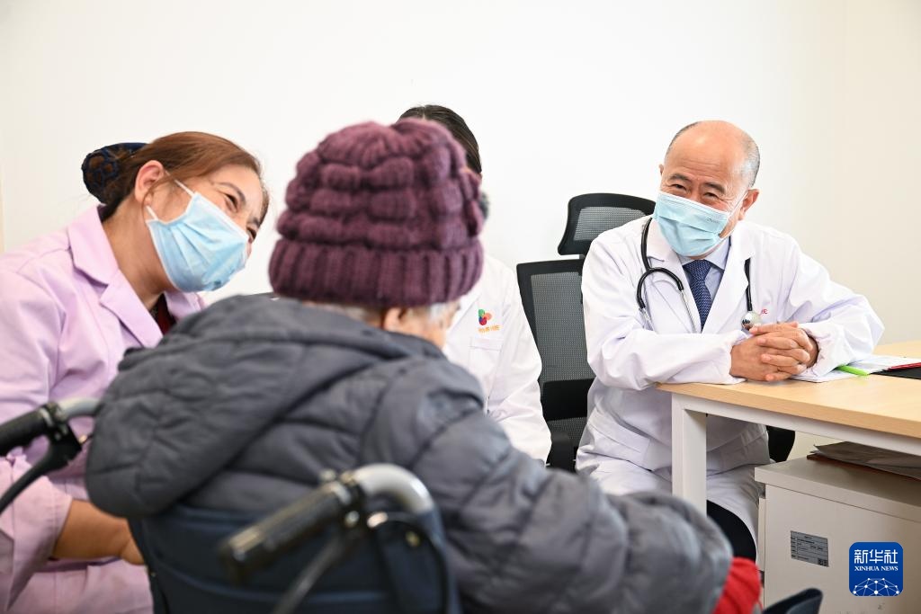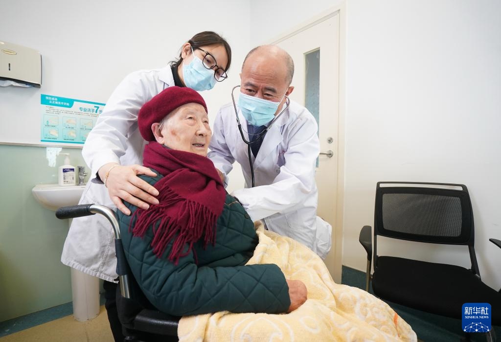 吴德沛在苏州苏康养老年病医院给老人义诊(2025年2月17日摄)。新华社记者 季春鹏 摄