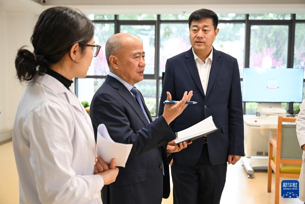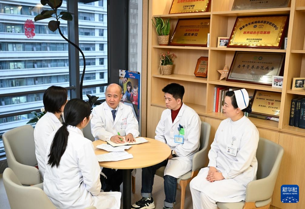 吴德沛和苏州大学附属第一医院老年医学科的医务人员交谈,征集他们的建议(2025年2月17日摄)。新华社记者 季春鹏 摄