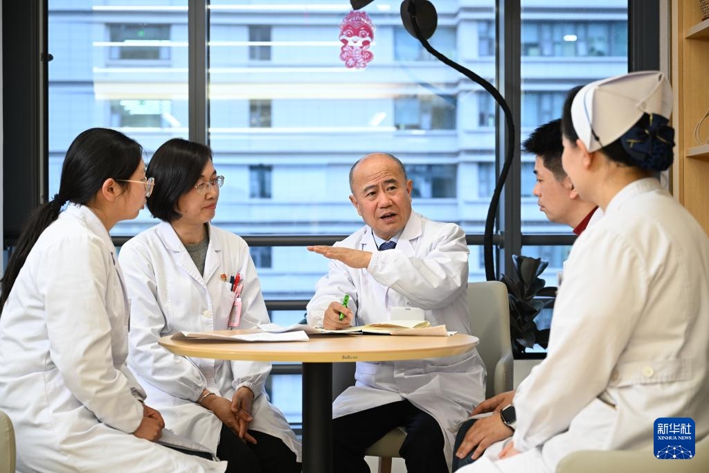 在苏州大学附属第一医院血液科,吴德沛带领团队查房(2025年2月17日摄)。新华社记者 季春鹏 摄