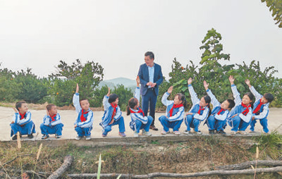 丹江口库区腹地,三面环水、一面靠山的湖北省丹江口市龙山镇彭家沟村,一片橘园边,彭家沟小学校长彭玉生(见图,人民日报记者范昊天摄)正带着10多名孩子上一堂以“‘红领巾’争当守水护水小卫士”为主题的“无边界课程”。
