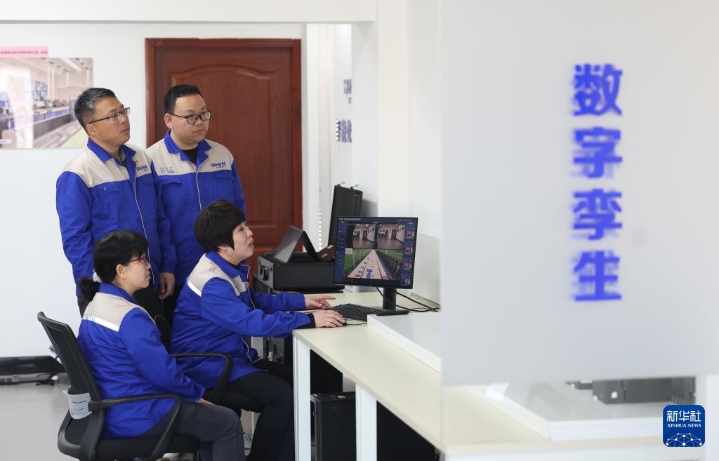 在大连华锐重工集团股份有限公司智能化实验室,孙元华(右下)和同事操作焦炉机械智能决策分析系统(2025年2月20日摄)。新华社记者 杨青 摄