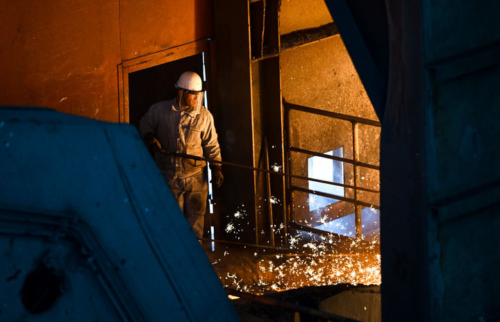 2025年2月20日,工人在内蒙古兴安盟乌兰浩特市乌兰浩特钢铁有限责任公司炼铁厂作业。新华社记者 贝赫 摄