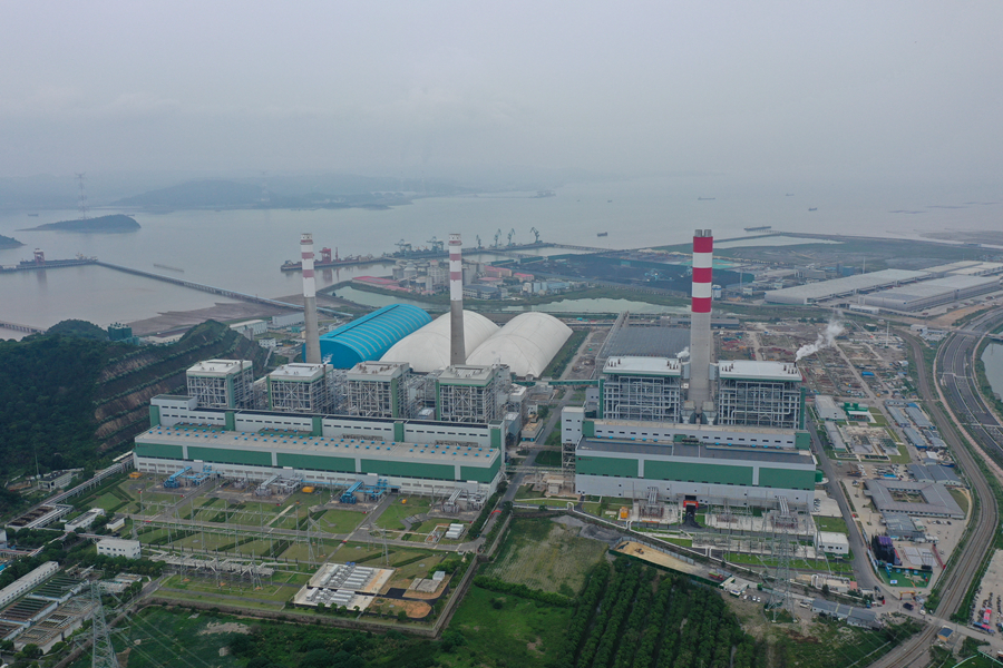2023年6月13日拍摄的浙能乐清电厂,右侧为三期工程(无人机照片),该工程入选浙江省“千项万亿”重大工程。新华社记者 黄宗治 摄