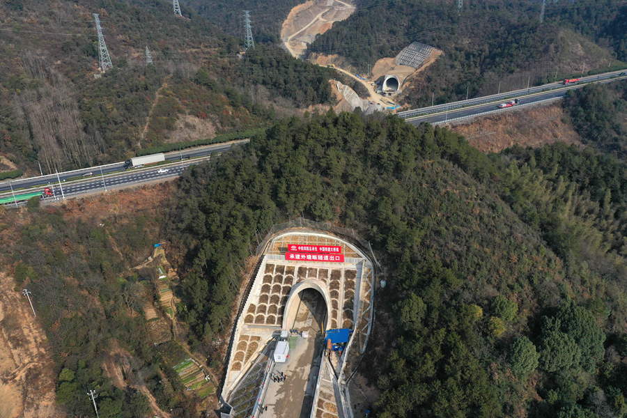 2024年1月6日拍摄的位于浙江省建德市境内的杭衢铁路(建衢段)外塘畈隧道口(无人机照片)。 杭衢铁路(建衢段)是我国首条采用“PPP(政府与社会资本合作)+EPC(设计施工总承包)”模式运作的高铁项目。新华社记者 黄宗治 摄
