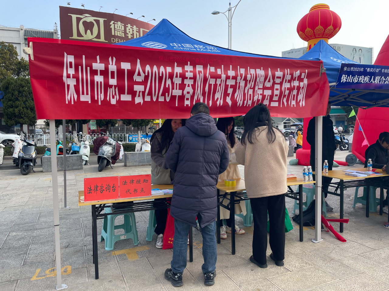 日前,由云南省保山市人社局主办的保山市2025年“春风行动”专场招聘会在隆阳区三馆广场拉开帷幕。活动现场,保山市总工会充分发挥职能优势,设置了咨询台,集中为有就业创业意愿的高校毕业生、农民工、就业困难人员答疑解惑、为求职者提供就业指导、法律法规政策宣传,让广大职工群众感受到“娘家人”的温暖。