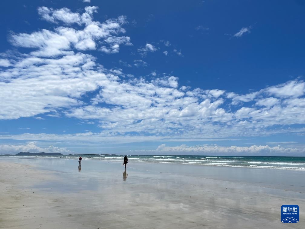 2月18日,游客在厄瓜多尔加拉帕戈斯群岛的海边散步(手机照片)。新华社记者 孟宜霏 摄