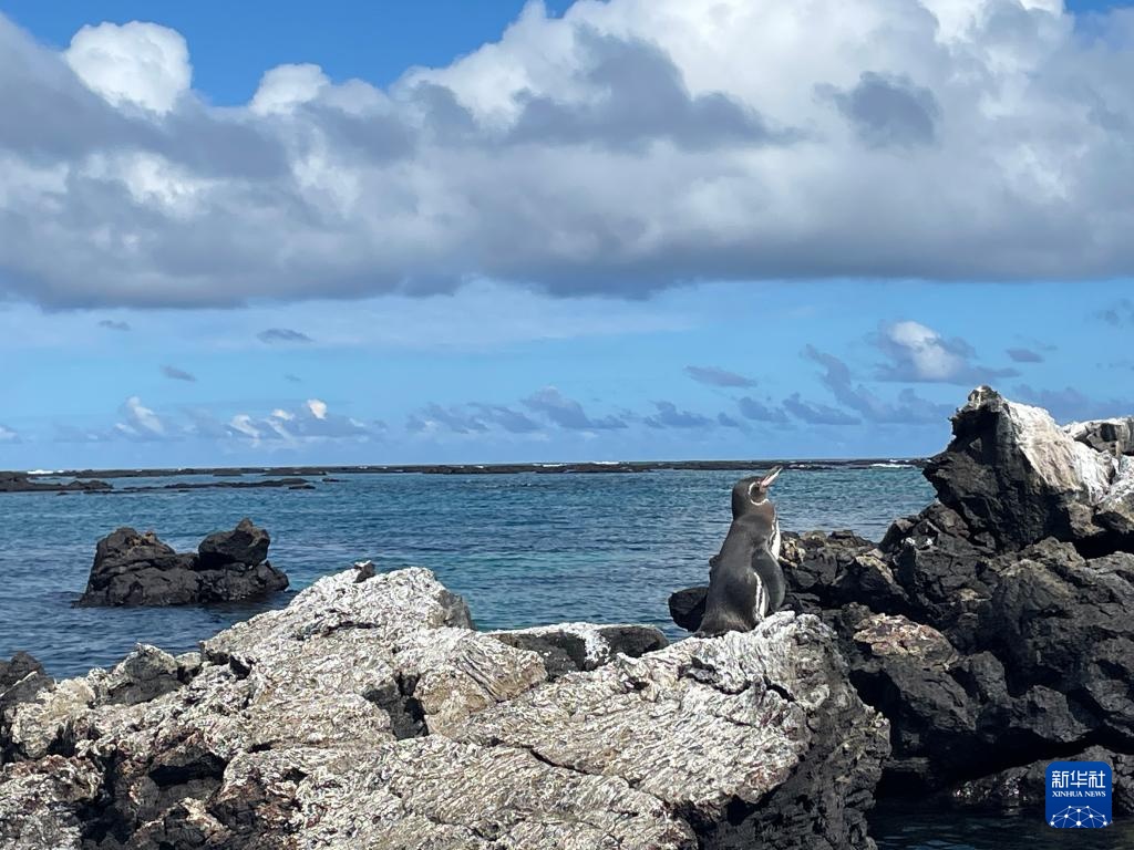 这是2月19日在厄瓜多尔加拉帕戈斯群岛拍摄的加拉帕戈斯企鹅(手机照片)。新华社记者 孟宜霏 摄