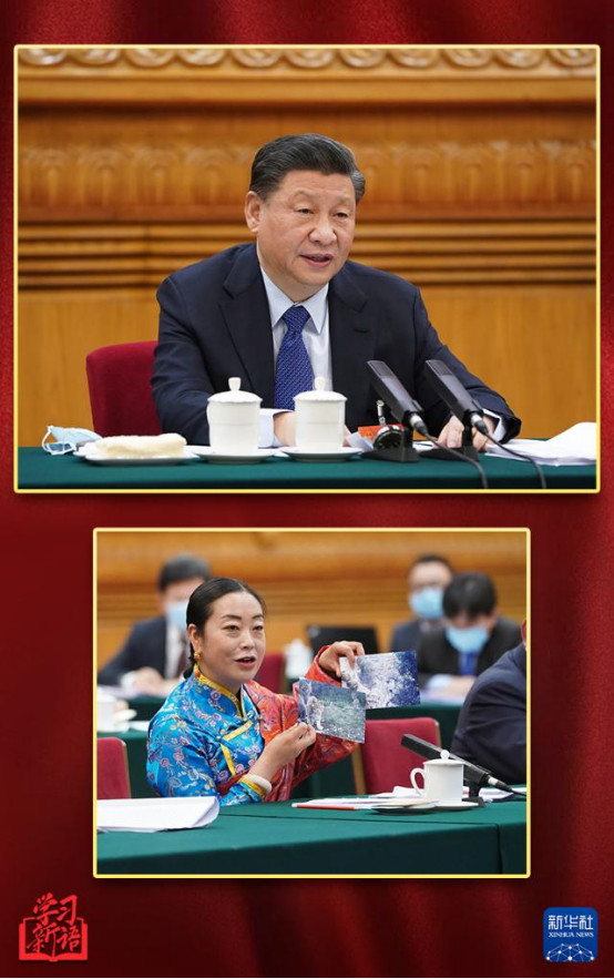 每年全国两会“下团组”,习近平总书记总会与代表委员们亲切互动、坦诚相见。在面对面深入交流中,常有代表委员用照片向总书记展示家乡的今昔对比或最新面貌。