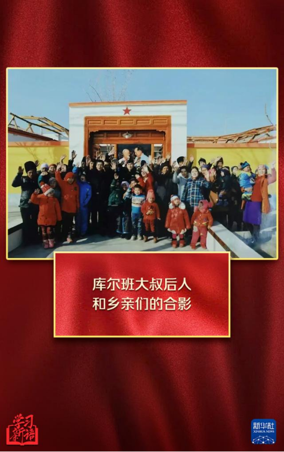 照片中,库尔班大叔的后人和乡亲们幸福地簇拥在一起。此前,总书记曾给库尔班大叔的后人回信,为他们送去美好的祝福。