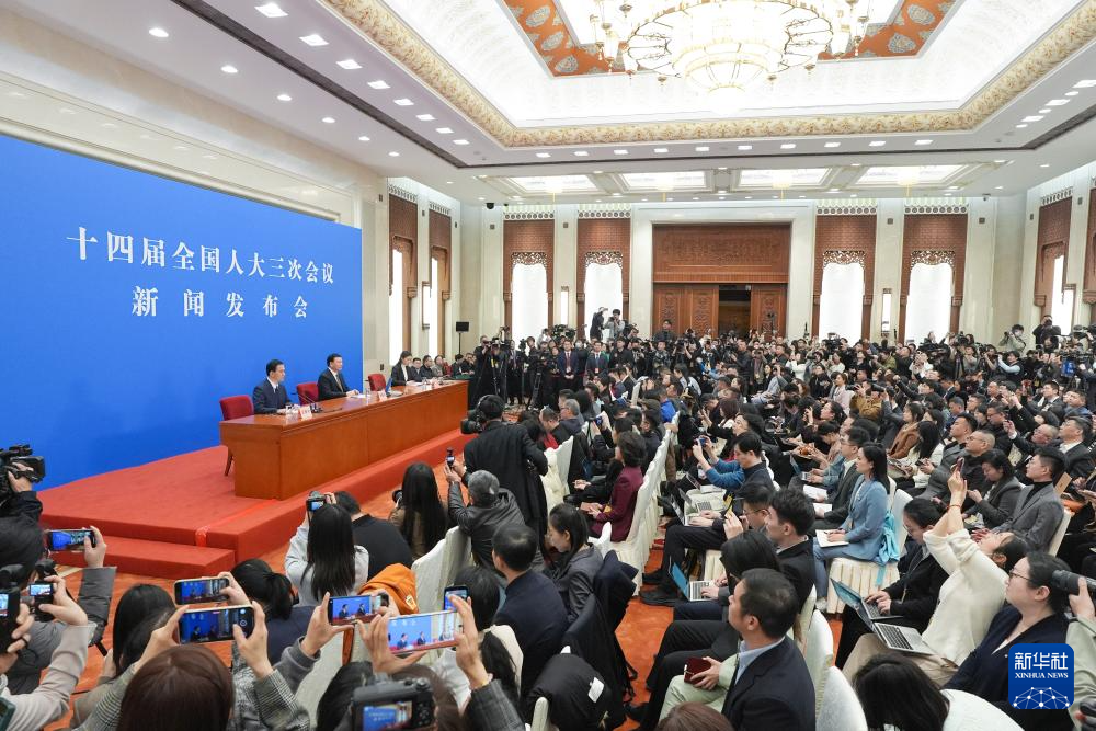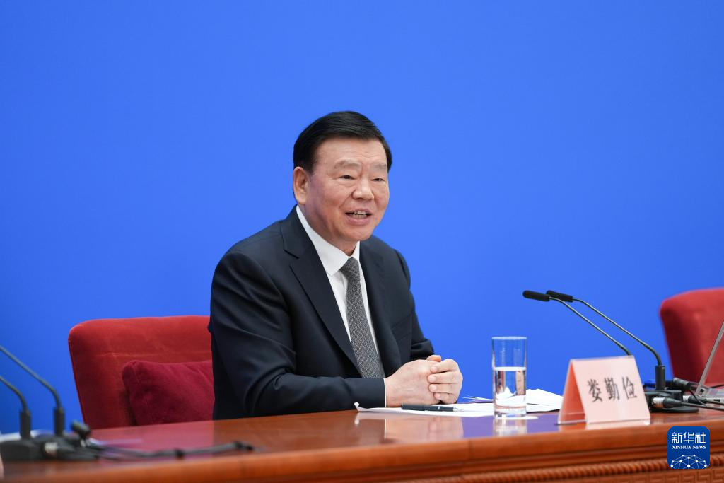 3月4日,十四届全国人大三次会议在北京人民大会堂举行新闻发布会。大会发言人娄勤俭就大会议程和人大工作相关问题回答中外记者提问。新华社记者 胥冰洁 摄