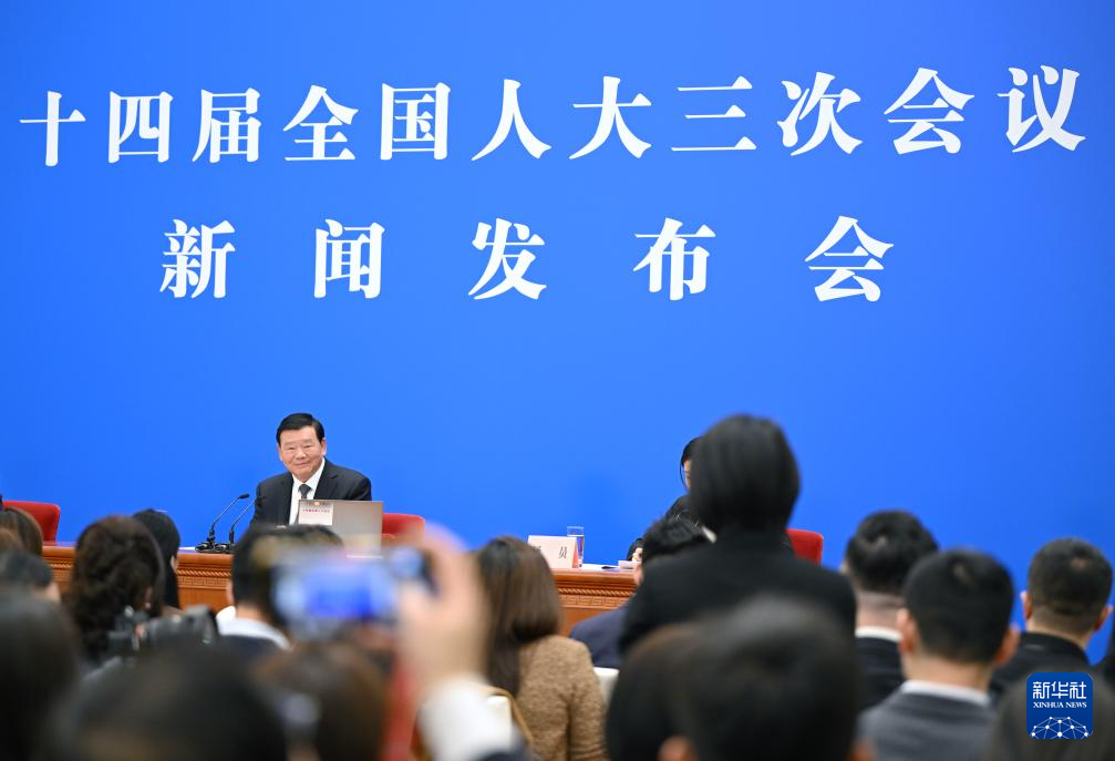 3月4日,十四届全国人大三次会议在北京人民大会堂举行新闻发布会。大会发言人娄勤俭就大会议程和人大工作相关问题回答中外记者提问。新华社记者 陈晔华 摄