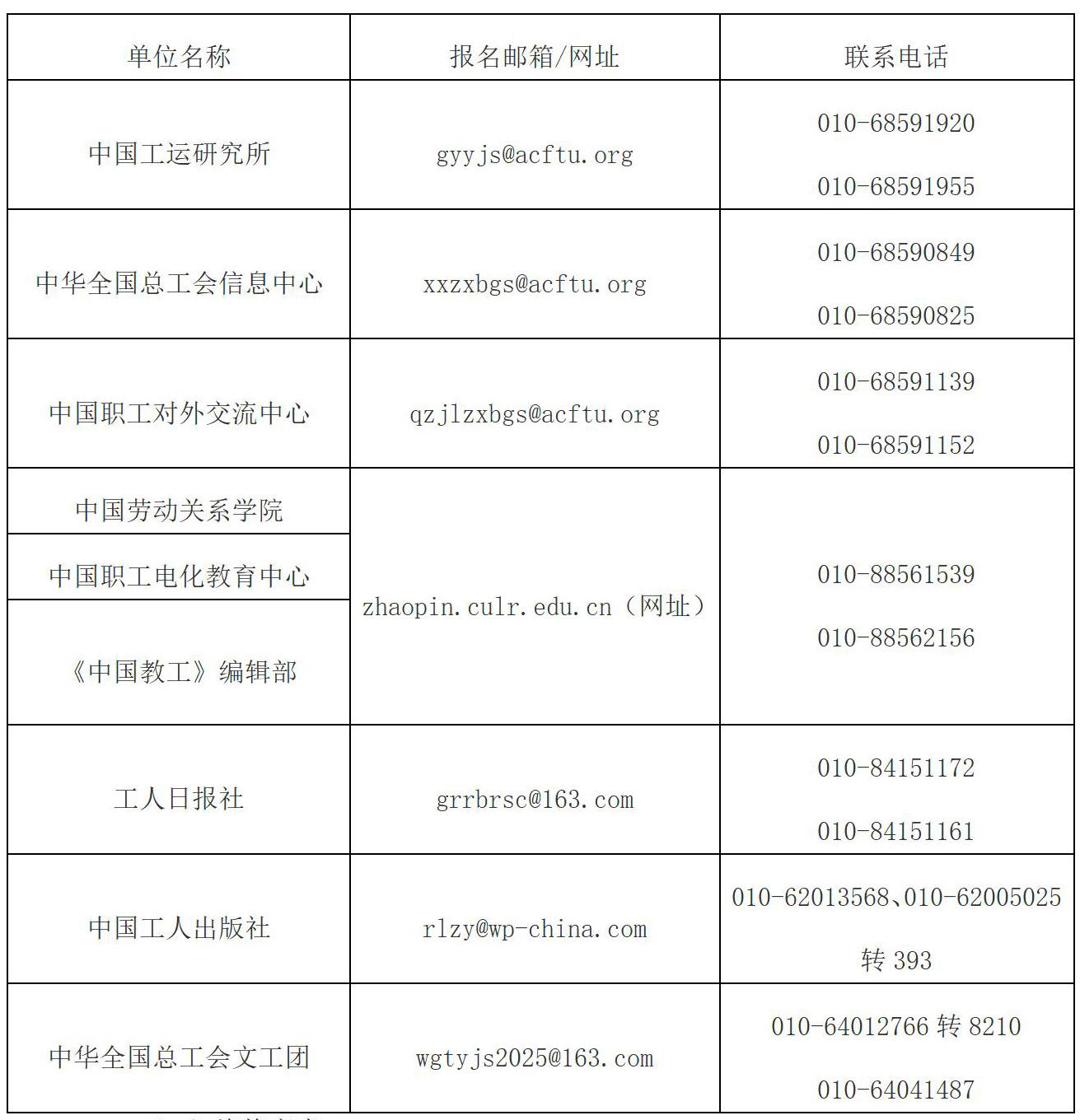 (1)中国劳动关系学院、中国职工电化教育中心、《中国教工》编辑部、工人日报社所有岗位: