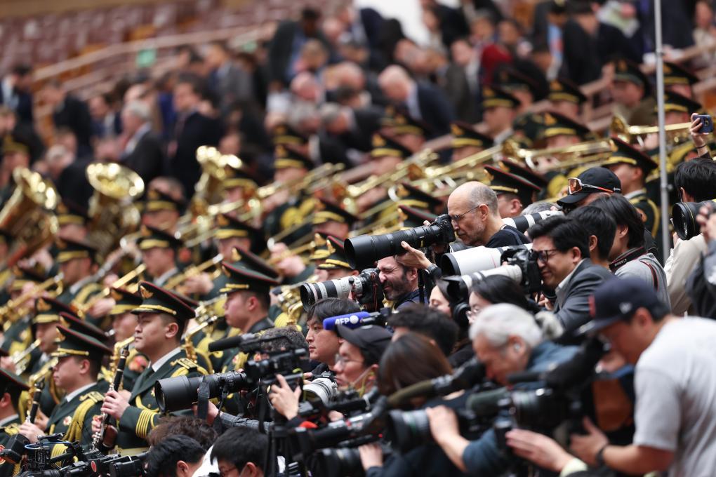 3月4日,全国政协十四届三次会议在北京人民大会堂举行开幕会。这是军乐团在演奏。新华社记者 庞兴雷 摄