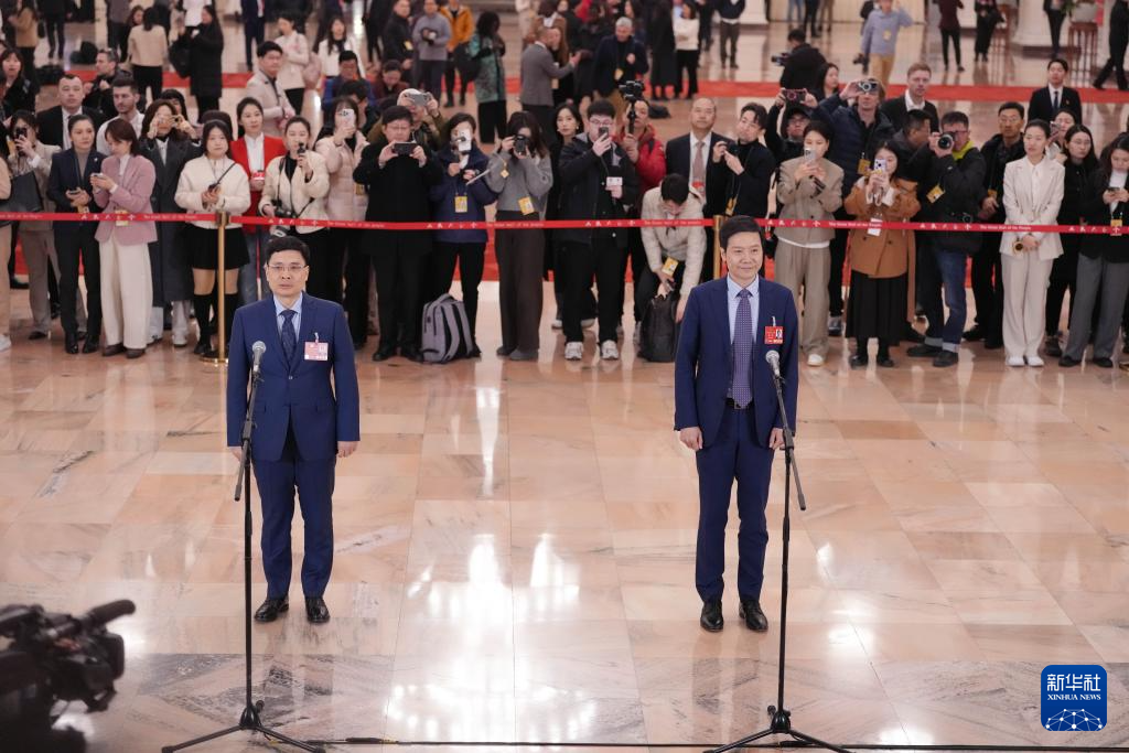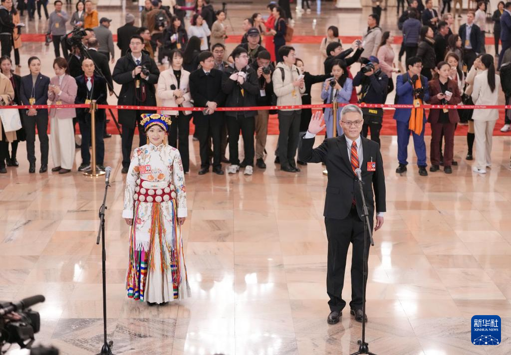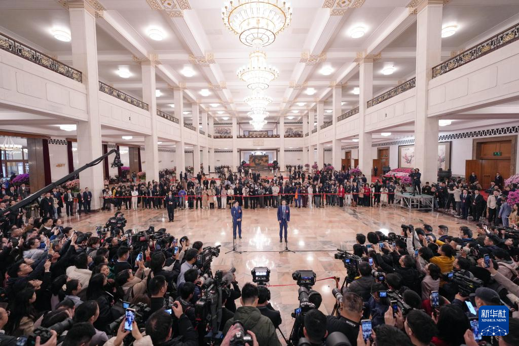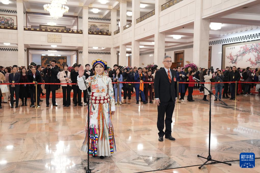 3月5日,第十四届全国人民代表大会第三次会议首场“代表通道”集中采访活动在北京人民大会堂举行。新华社记者 陈晔华 摄