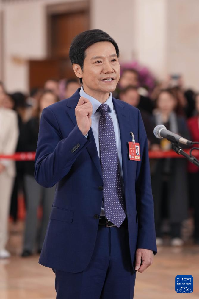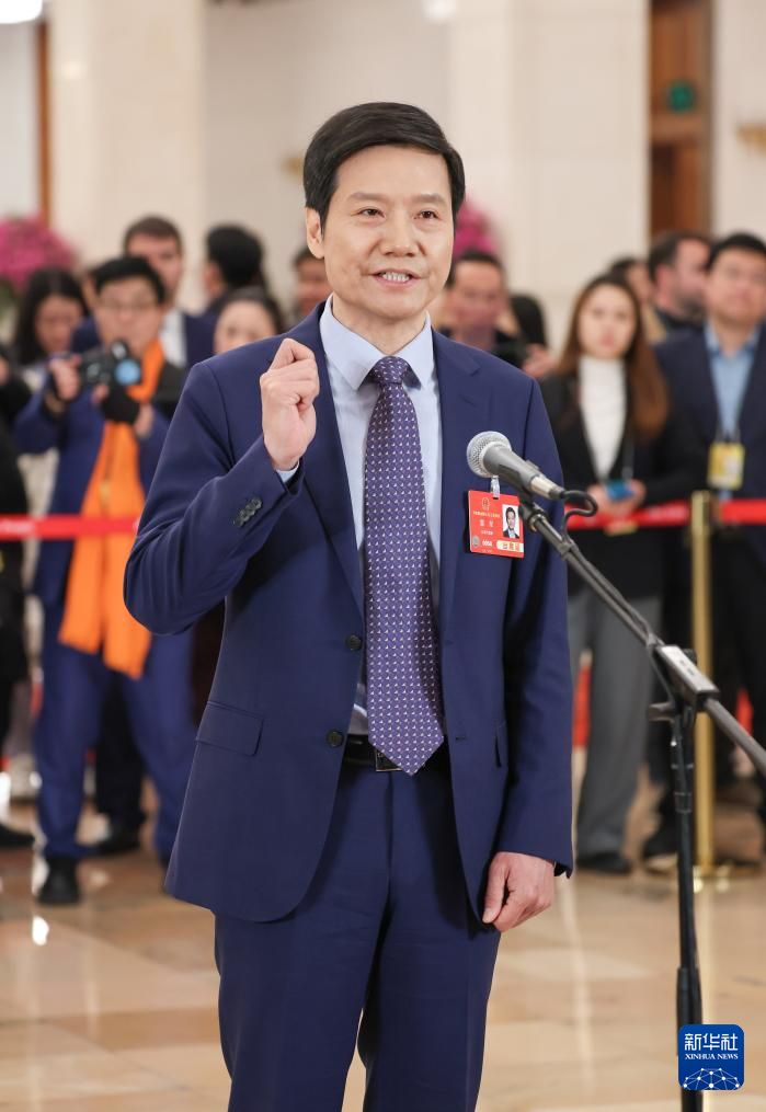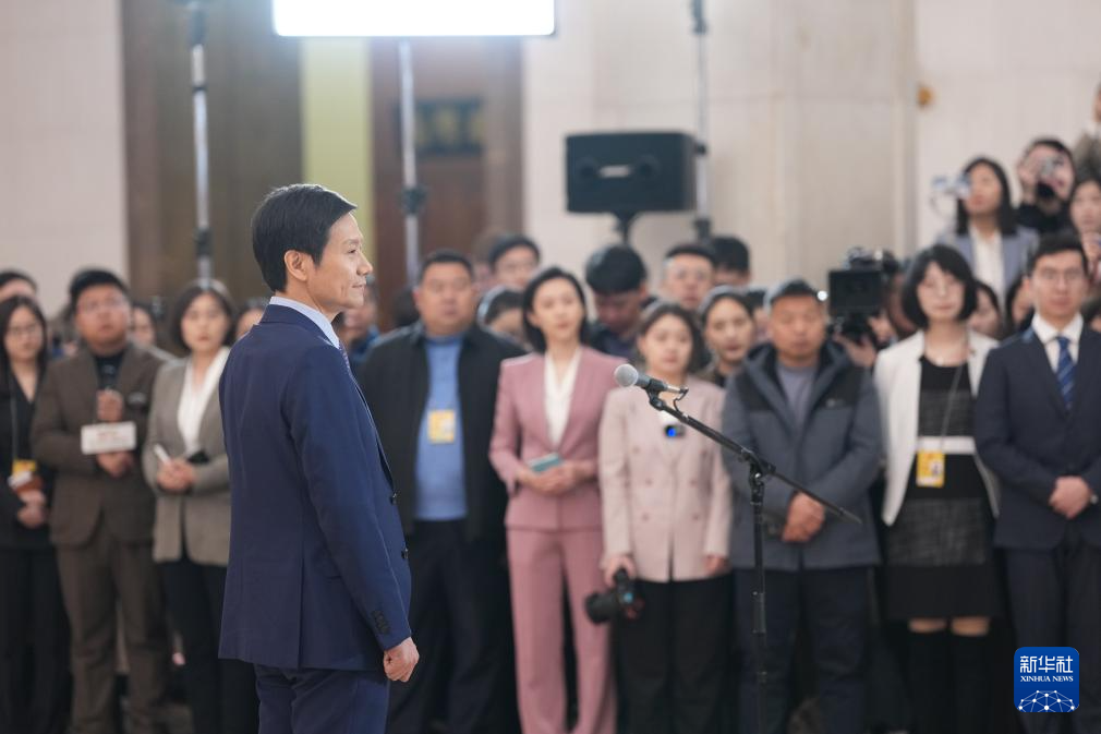 3月5日,第十四届全国人民代表大会第三次会议首场“代表通道”集中采访活动在北京人民大会堂举行。这是全国人大代表雷军接受媒体采访。新华社记者 卢烨 摄