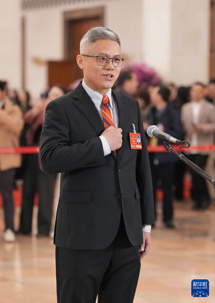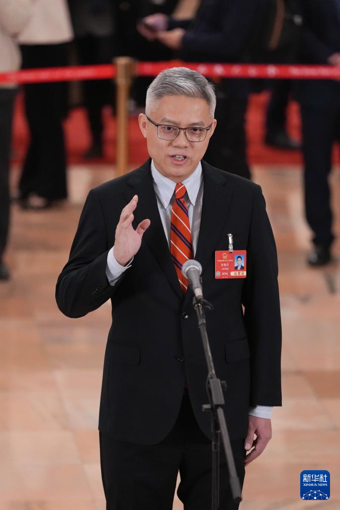 3月5日,第十四届全国人民代表大会第三次会议首场“代表通道”集中采访活动在北京人民大会堂举行。这是全国人大代表张天任接受媒体采访。新华社记者 刘大伟 摄