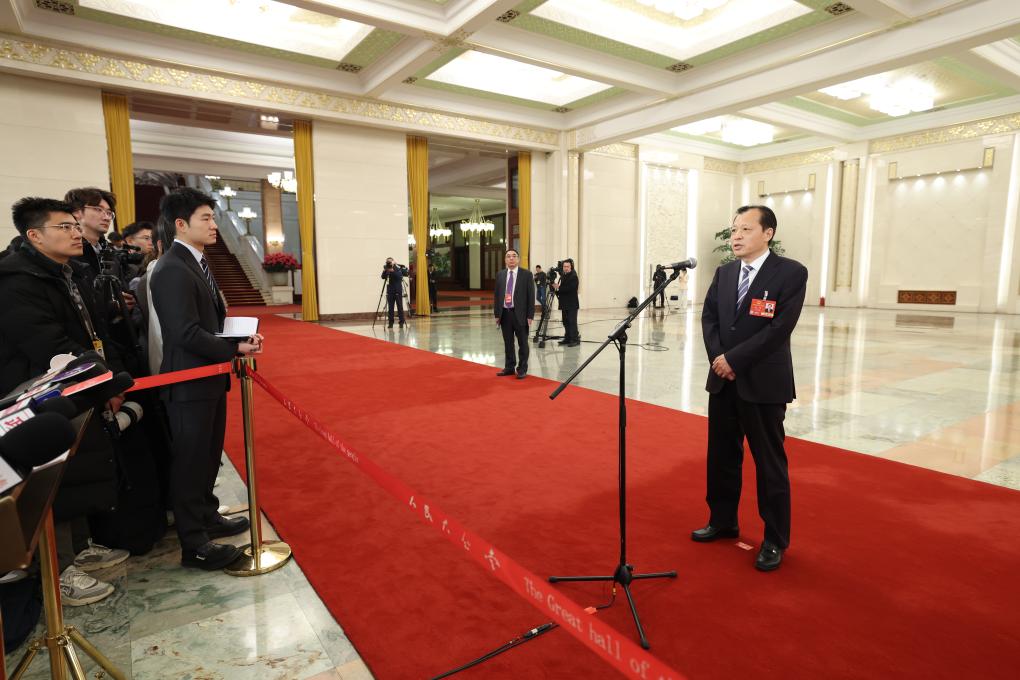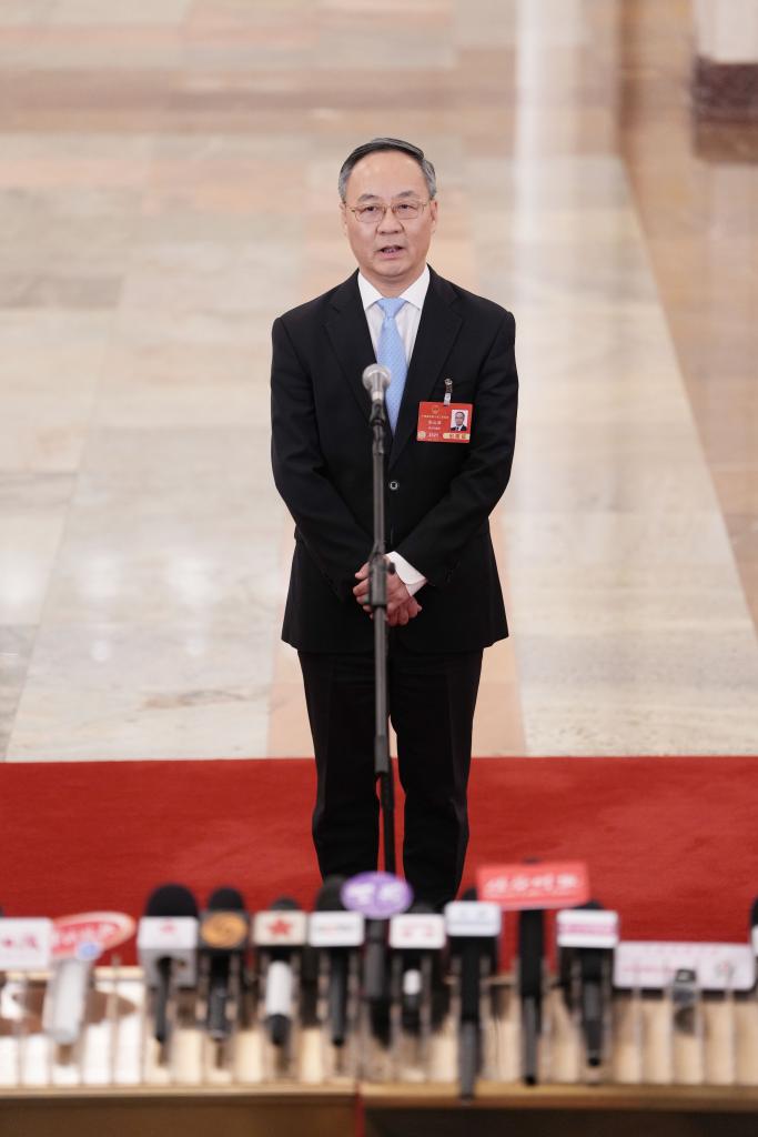 3月5日,第十四届全国人民代表大会第三次会议首场“部长通道”集中采访活动在北京人民大会堂举行。这是国家市场监督管理总局局长罗文接受媒体采访。新华社记者 陈晔华 摄