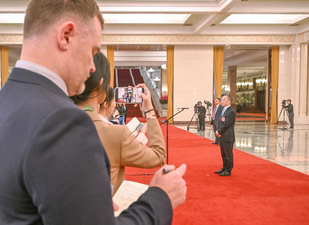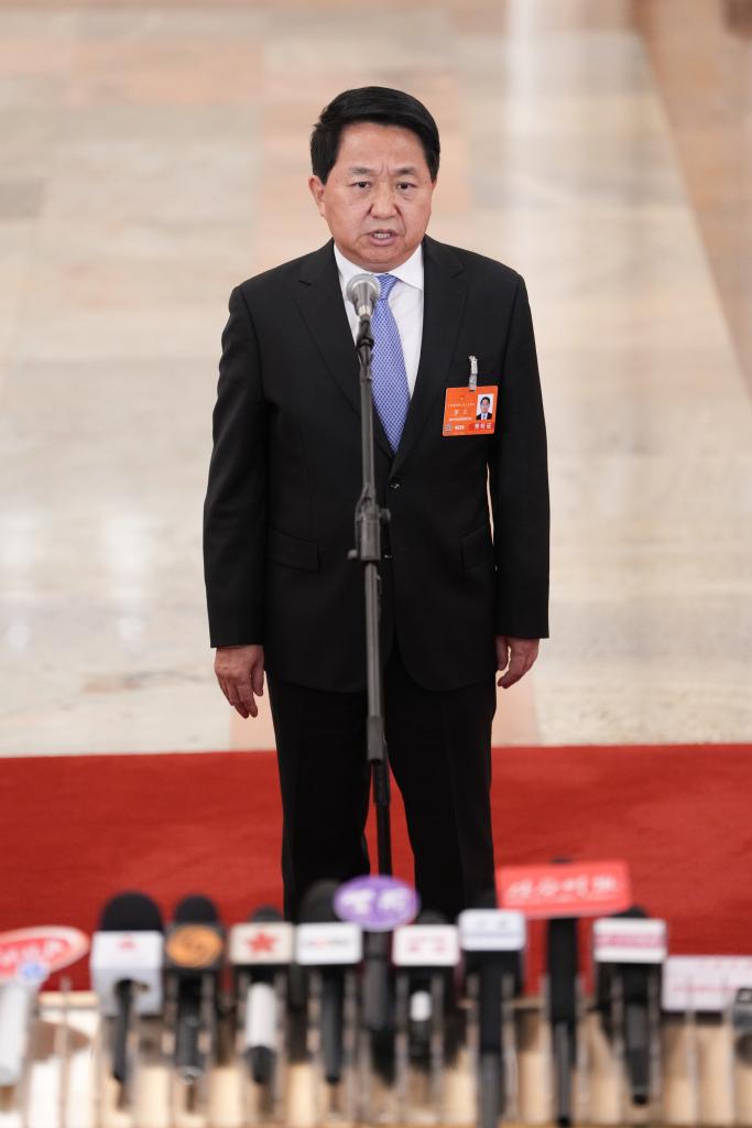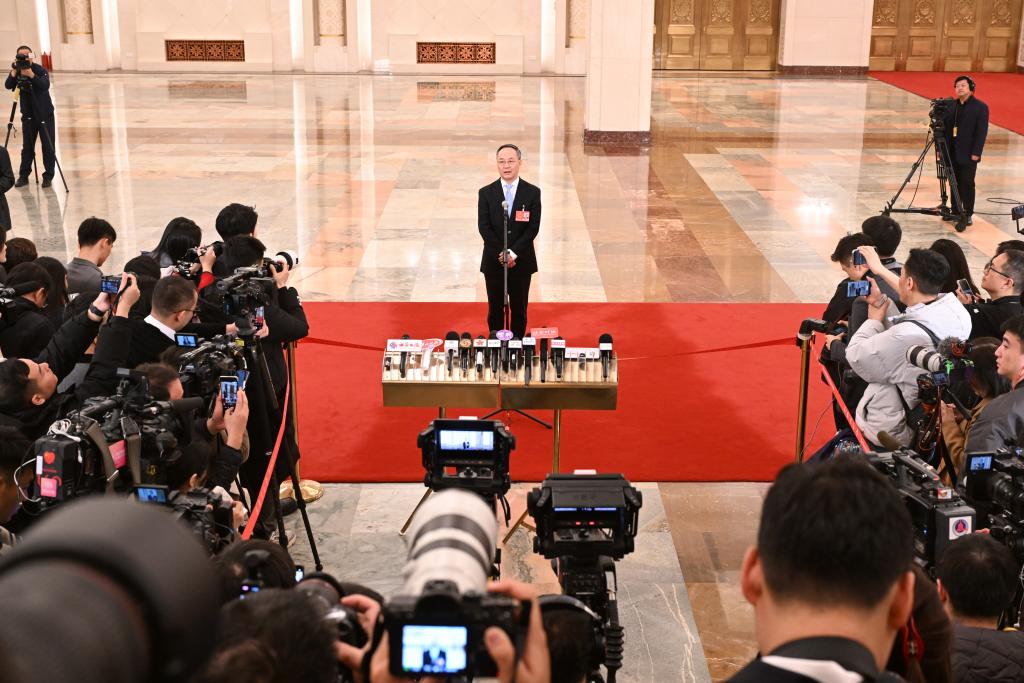 3月5日,第十四届全国人民代表大会第三次会议首场“部长通道”集中采访活动在北京人民大会堂举行。这是国家金融监督管理总局局长李云泽接受媒体采访。新华社记者 吕帅 摄