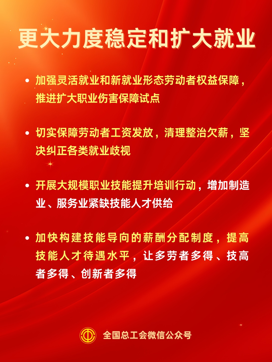 落实和优化休假制度,释放文化、旅游、体育等消费潜力;推进职普融通、产教融合,增强职业教育适应性;建设一流产业技术工人队伍;提高技能人才待遇水平;制定促进生育政策,发放育儿补贴……来看2025年政府工作任务里的“工”声音!