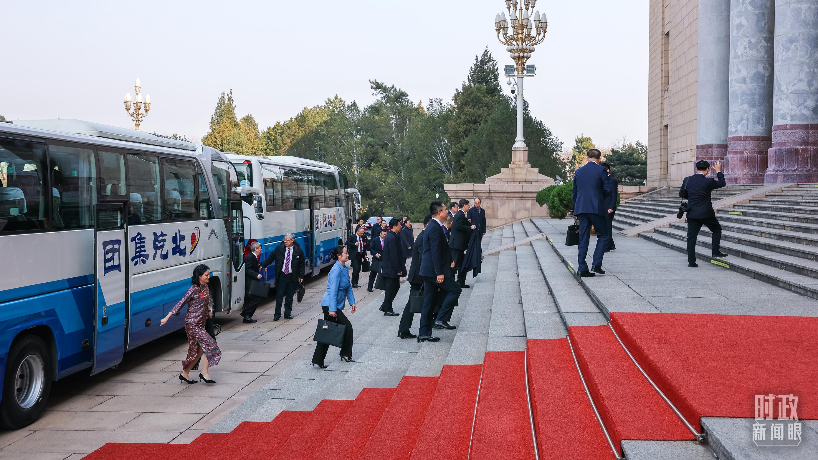 △代表们陆续抵达人民大会堂。(总台央视记者周倜拍摄)