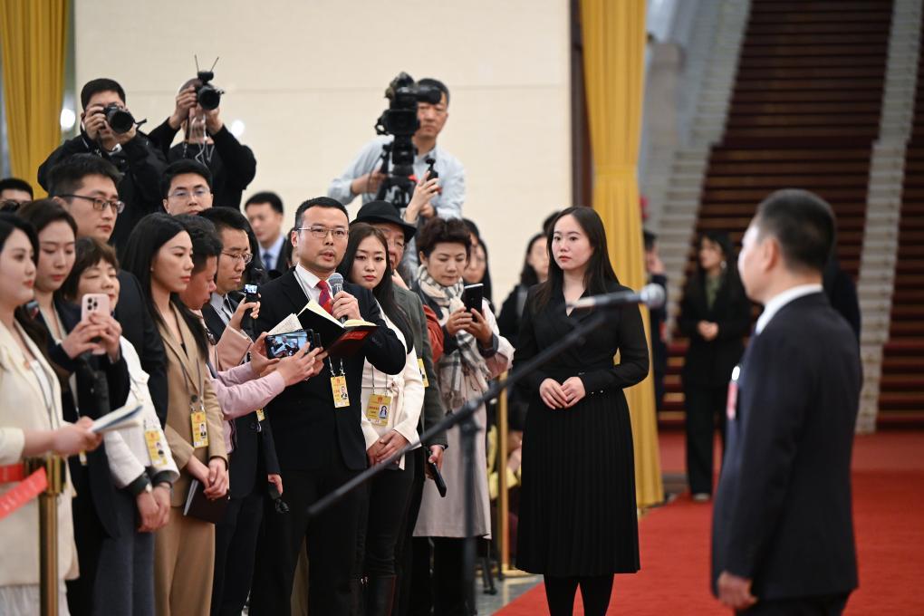 3月8日,第十四届全国人民代表大会第三次会议第二场“部长通道”集中采访活动在北京人民大会堂举行。这是记者在现场提问。新华社记者 胥冰洁 摄