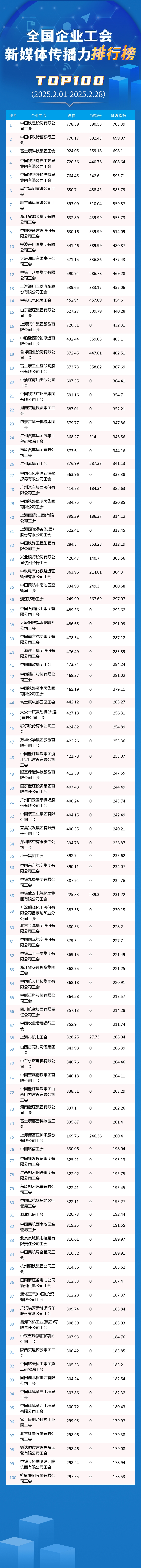 2月全国企业工会新媒体传播力排行榜焕新升级!
