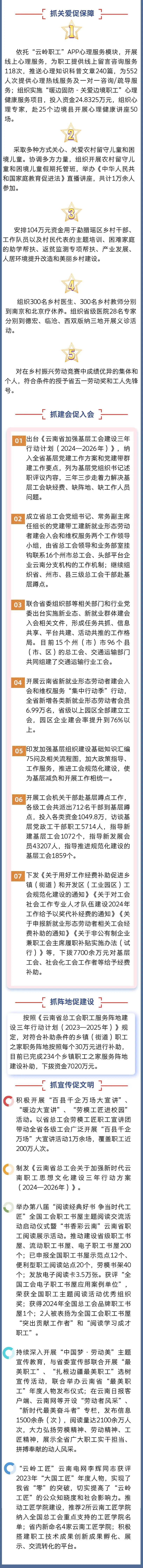 为巩固拓展脱贫攻坚成果,助推乡村振兴,云南省总工会于2021年出台《云南省总工会关于汇聚工会力量助力巩固拓展脱贫攻坚成果 助推乡村振兴的实施意见》,持续不断抓好工作,2024年亮点频出,助力乡村振兴成效明显。