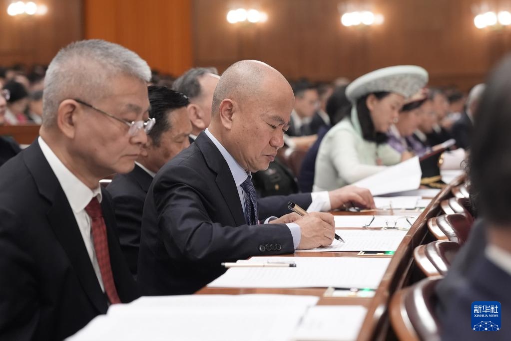 3月5日,全国人大代表、重庆红江机械有限责任公司加工中心特级技师傅国涛在北京人民大会堂出席十四届全国人大三次会议开幕会。新华社记者 申宏 摄