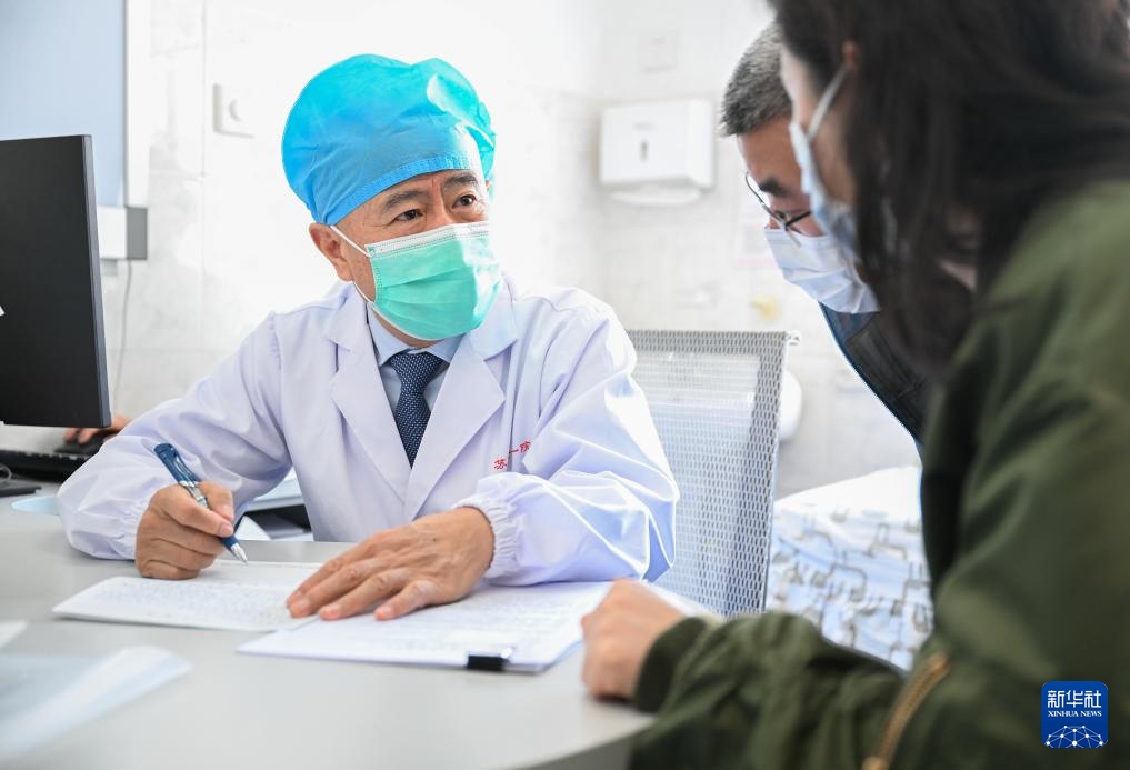 在苏州大学附属第一医院血液科,全国政协委员、苏州大学附属第一医院血液科主任吴德沛和患者家属交谈(2025年2月18日摄)。新华社记者 季春鹏 摄