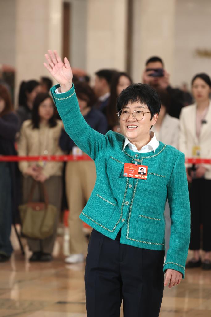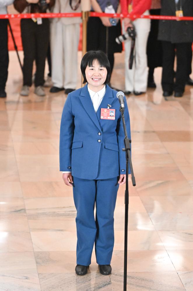 3月11日,第十四届全国人民代表大会第三次会议第三场“代表通道”集中采访活动在北京人民大会堂举行。这是全国人大代表谭新萍接受媒体采访。新华社记者 胥冰洁 摄