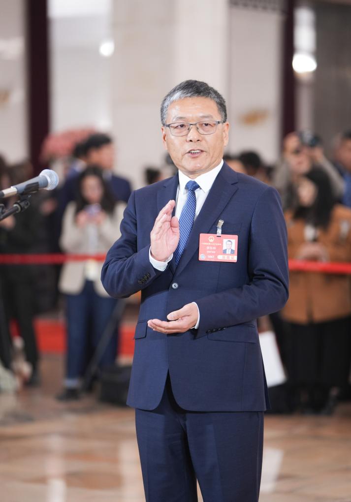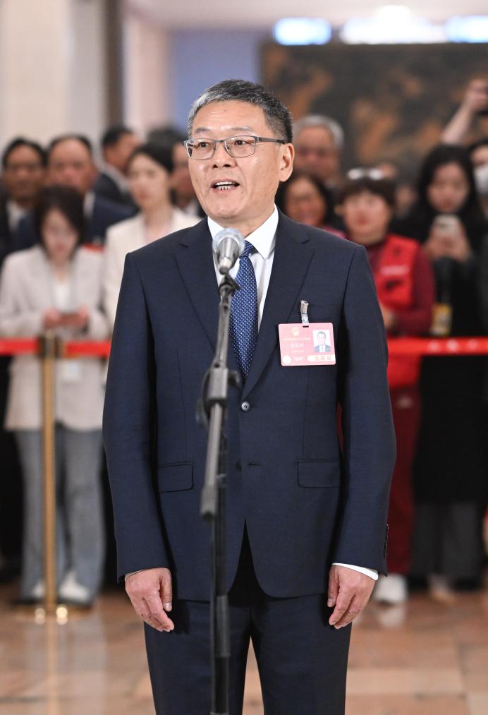 3月11日,第十四届全国人民代表大会第三次会议第三场“代表通道”集中采访活动在北京人民大会堂举行。这是全国人大代表李东林接受媒体采访。新华社记者 陈晔华 摄