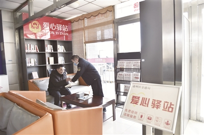 中午11时许,在距离西集综合检查站9.5公里的牛牧屯综合检查站“24小时工会驿站”里,货车司机孟师傅靠在沙发上饮水休息。“开一天长途车挺辛苦,以前我们只能在车上临时休息。这里的‘24小时工会驿站’为司机提供了如厕和歇脚的场所,还能免费充电、加热食物、使用应急药品和一次性雨具,非常暖心和便捷。”孟师傅说。