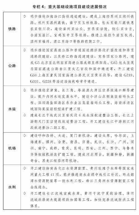 五是加快完善现代化基础设施体系。高质量推进川藏铁路等重大项目建设,加快构建国家水网工程体系,高水平共建西部陆海新通道。深入实施降低全社会物流成本专项行动。持续推进国家物流枢纽、国家骨干冷链物流基地、国家综合货运枢纽体系、大宗商品资源配置枢纽等布局建设。加快完善应急物流体系。深入推进公路水路交通基础设施数字化转型升级。推动各种运输方式规则标准统一协同,加快多式联运“一单制、一箱制”应用。