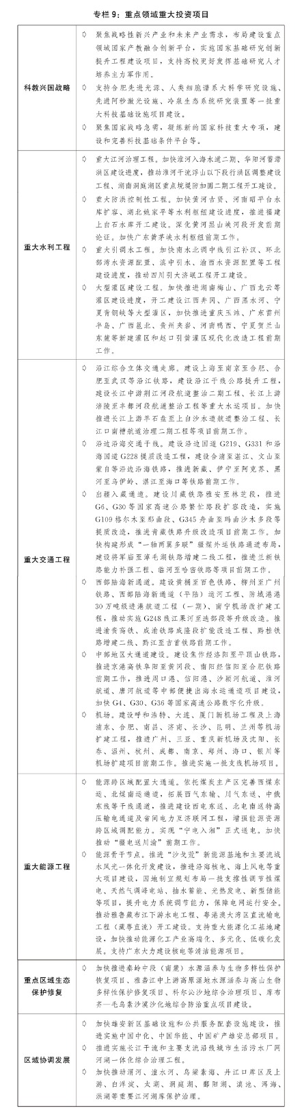 二是扩大有效益的投资。统筹传统和新型基础设施建设、传统和新兴产业发展、“投资于物”和“投资于人”,着力提高投资的经济、社会、生态等综合效益。2025年安排中央预算内投资7350亿元,比2024年多350亿元。扎实推进重大工程项目建设,推动“十四五”规划102项重大工程圆满收官,及早谋划“十五五”重大项目。常态化做好项目谋划储备,加强用地、用海、用能、环评等要素和融资保障,高质量推进项目前期工作和建设实施,尽快形成实物工作量。加快地方政府专项债券发行使用,优化完善专项债券管理机制,额度分配向项目准备充分、投资效率较高、资金使用效益好的地区倾斜,扩大用作项目资本金的领域、比例,实施好投向领域“负面清单”管理、下放项目审核权限等措施,在部分省市开展“自审自发”试点。建立政府投资支持基础性、公益性、长远性重大项目建设长效机制。深化投资审批制度改革,完善项目全周期监督管理机制。更大力度促进民间投资,从放宽准入、权益保护、要素协同、融资支持等方面进一步健全民营企业参与国家重大项目建设的长效机制,常态化向民间资本推介项目,在铁路、核电、水利、生态环保、仓储物流、新型基础设施、公共服务等领域推出一批吸引民间资本参与的重大项目,规范实施政府和社会资本合作(PPP)新机制,推动基础设施领域不动产投资信托基金(REITs)扩围扩容。