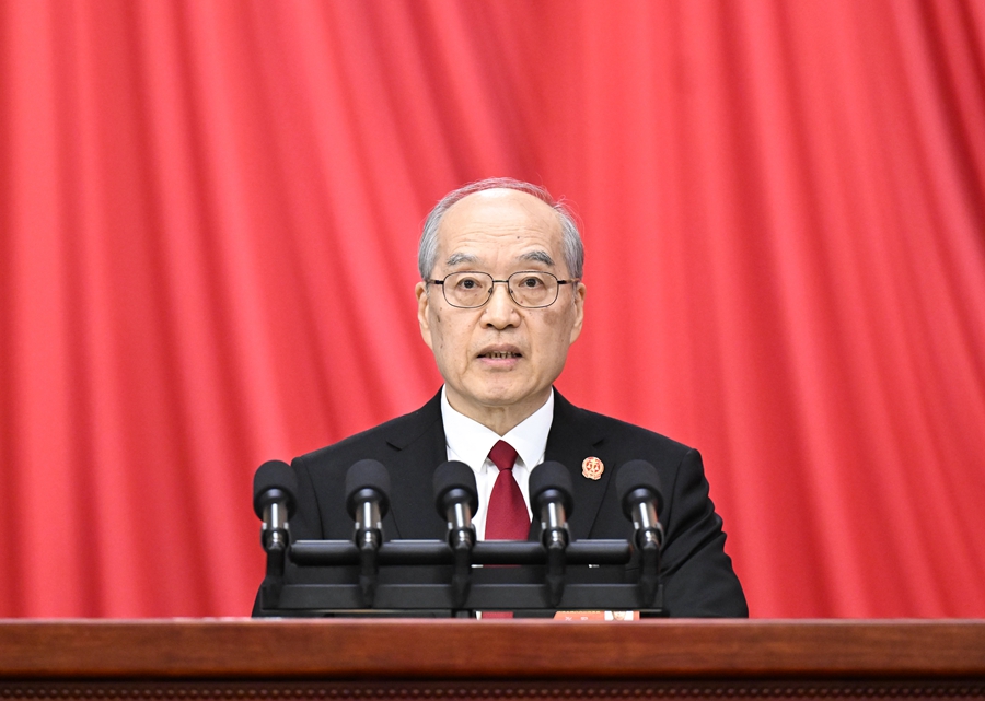 3月8日,十四届全国人大三次会议在北京人民大会堂举行第二次全体会议。最高人民法院院长张军代表最高人民法院作工作报告。新华社记者 申宏 摄