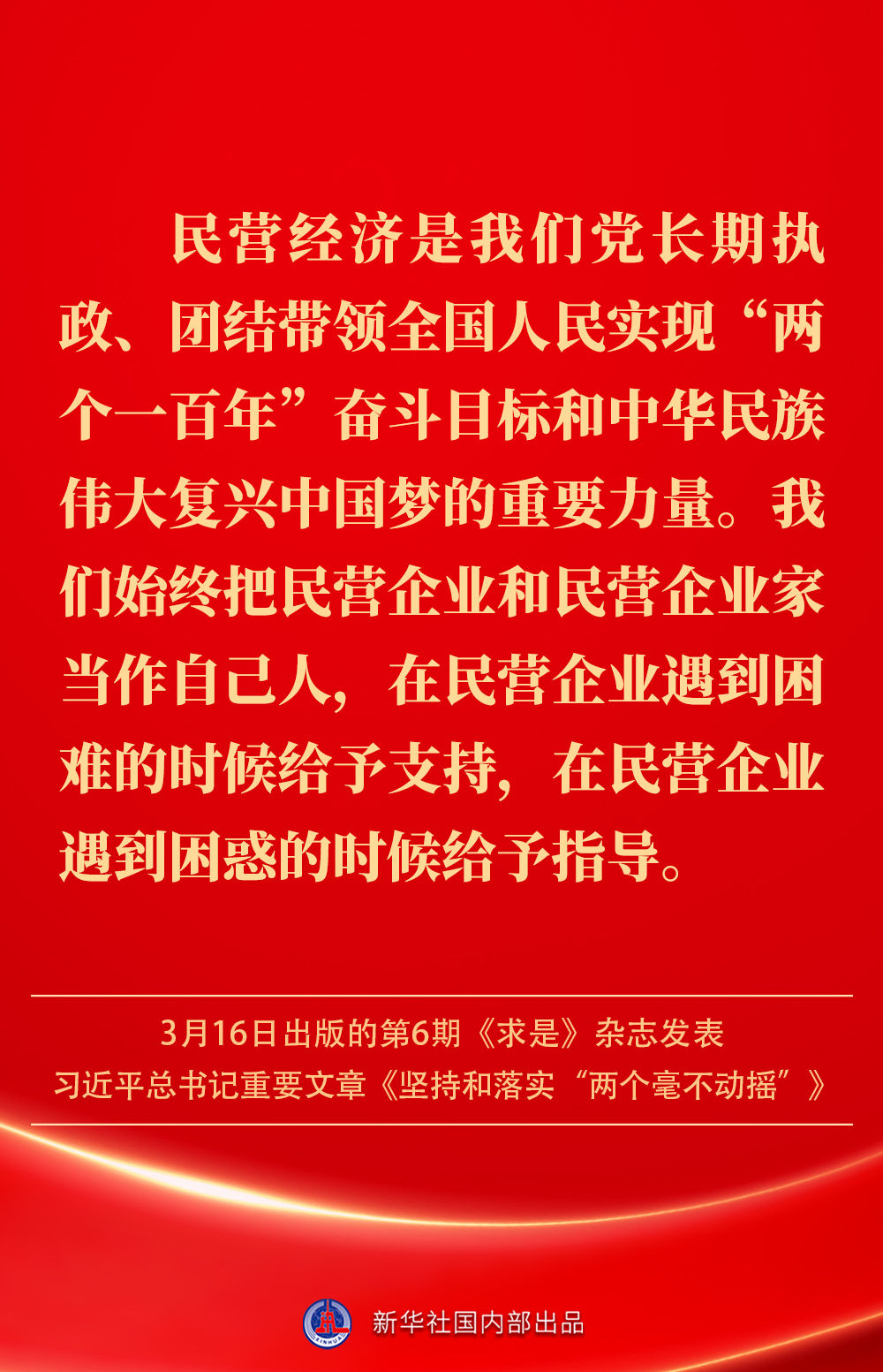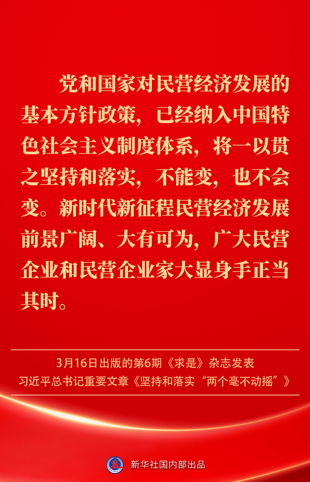 3月16日出版的第6期《求是》杂志发表习近平总书记重要文章《坚持和落实“两个毫不动摇”》。这是习近平总书记2013年11月至2025年2月期间有关重要论述的节录。如何认识“两个毫不动摇”?公有制经济和非公有制经济是怎样的关系?习近平总书记这样阐述——