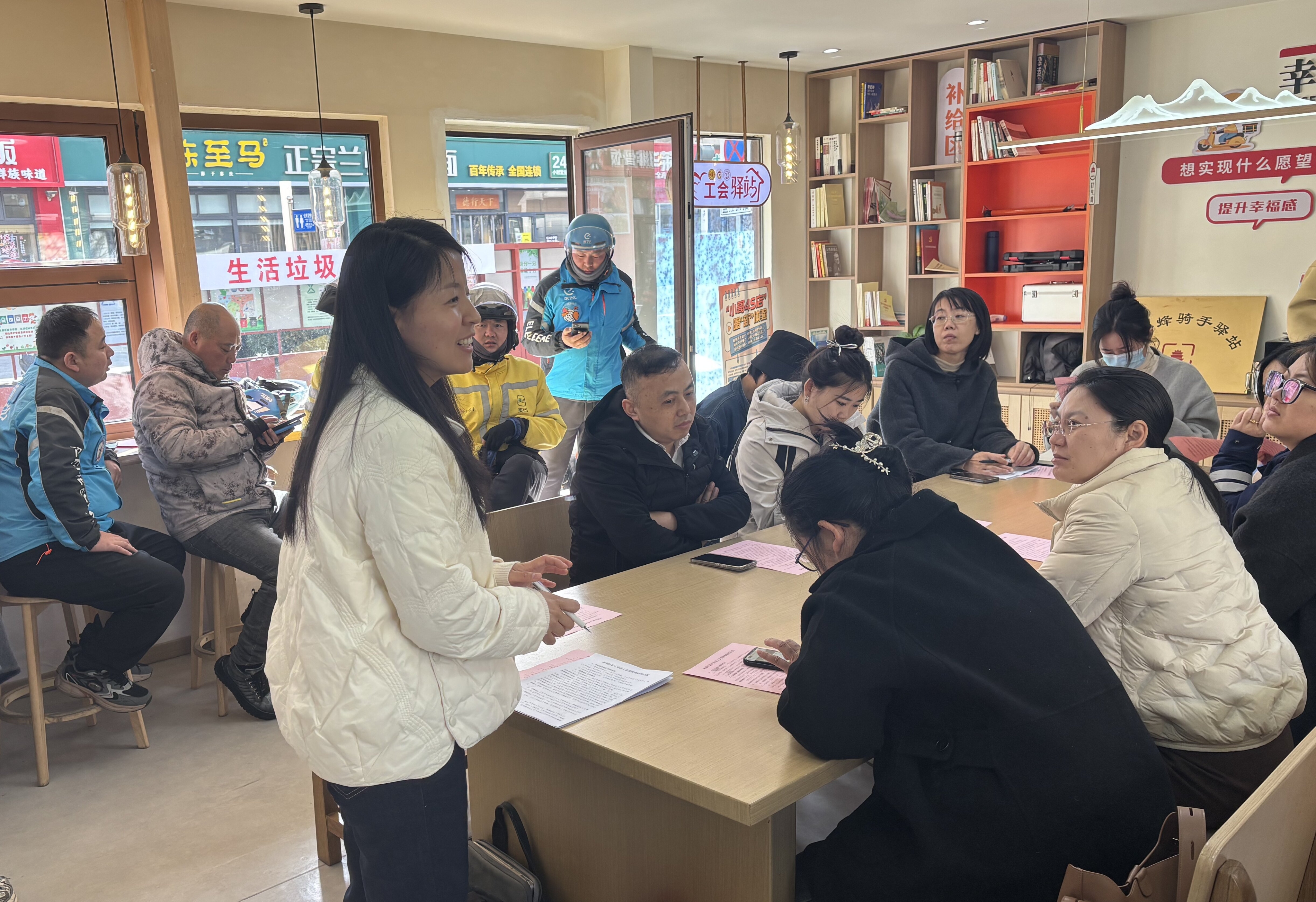 考虑到新就业群体工作的特殊性,服务小队提前沟通,避开工作高峰时段,走进华厦网约车、向阳街工会驿站,为网约车司机、外卖配送员等新就业形态劳动者讲解移动体检、专项保险等专属服务项目,真正把服务送到新就业形态劳动者的心坎上。