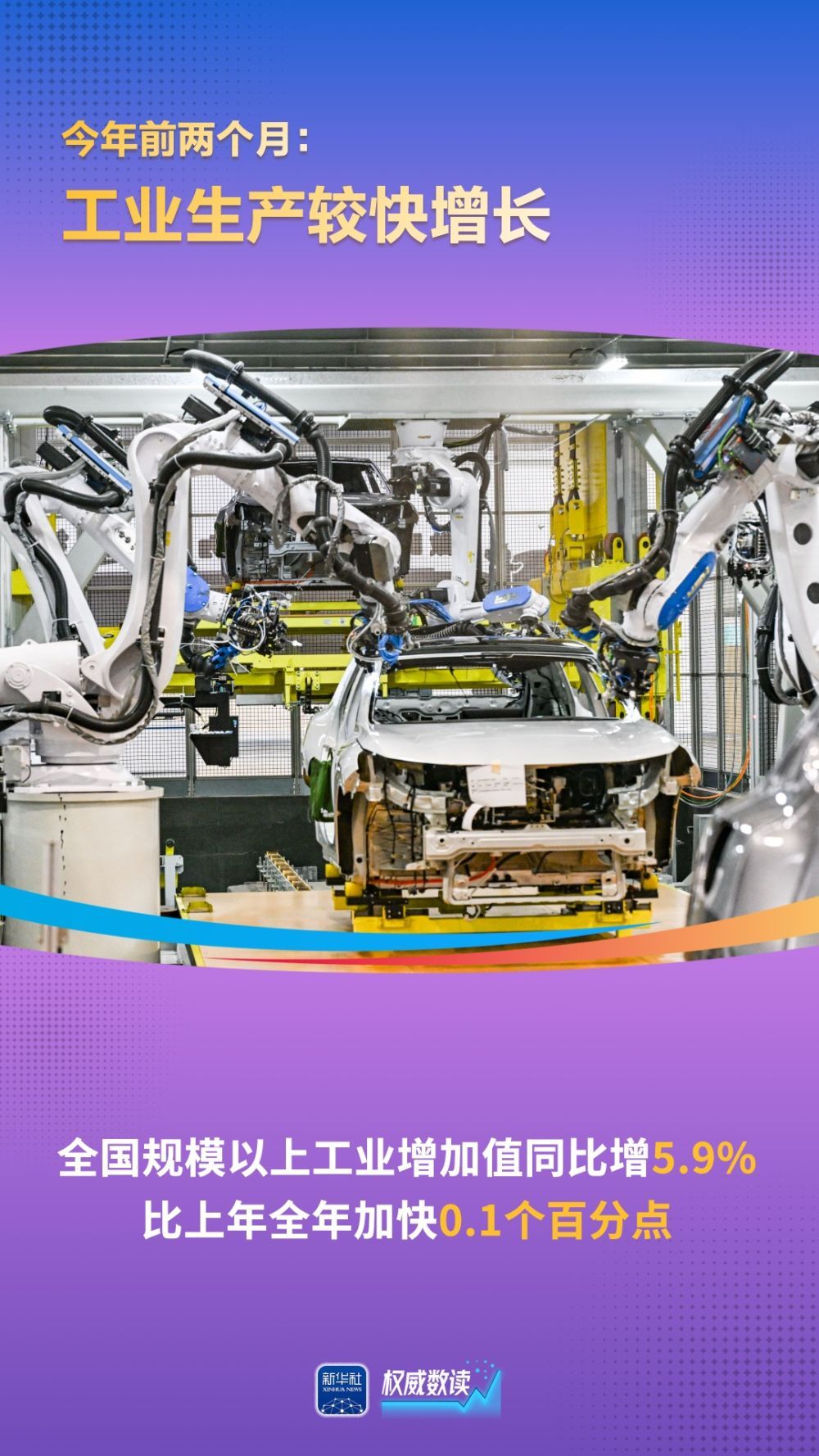 国家统计局17日发布的数据显示,今年前两个月,工业服务业较快增长,消费投资继续改善,就业形势总体稳定,新质生产力成长壮大,经济运行起步平稳,发展态势向新向好。