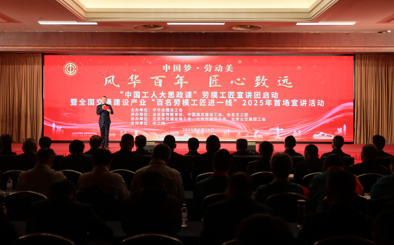 3月18日,“中国工人大思政课”劳模工匠宣讲团启动暨全国交通建设产业“百名劳模工匠进一线”2025年首场宣讲活动在北京举办,北京交通建设系统劳模和职工代表等300余人现场参加。