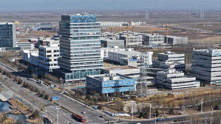这是2月24日拍摄的京津中关村科技城(无人机照片)。京津中关村科技城自2017年正式破土动工以来,已累计注册市场主体1800余家,2024年税收同比增长13%,固定资产投资同比增长31.8%,规上工业产值同比增长62%。新华社记者 李然 摄