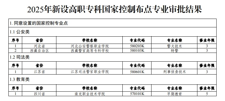 审批结果可在教育部政务服务管理平台(网址:http://gz.moe.gov.cn)查询。审批同意设置的国家控制布点专业将导入全国职业院校专业设置管理与公共信息服务平台,自2025年起可以招生。