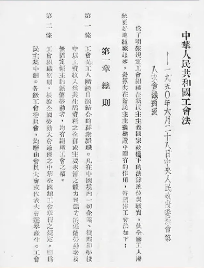 先河:新中国首部《工会法》为工会工作奠定法治基础