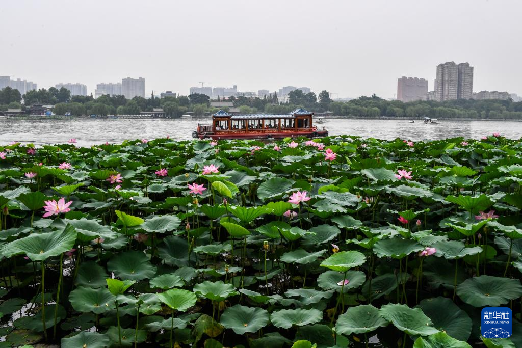 济南大明湖荷花盛开(2024年6月29日摄)。新华社记者 朱峥 摄