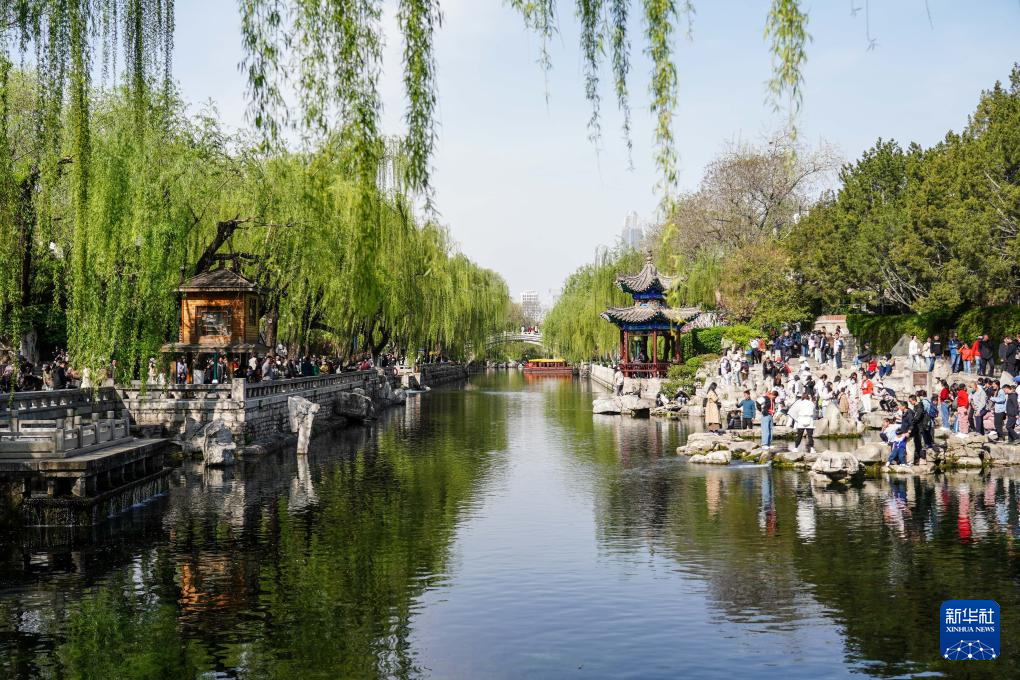 游人在济南护城河畔游玩(2024年4月5日摄)。新华社记者 朱峥 摄