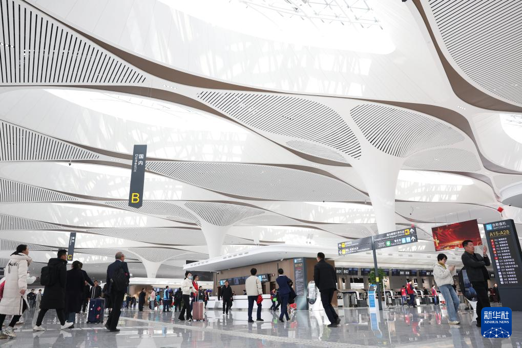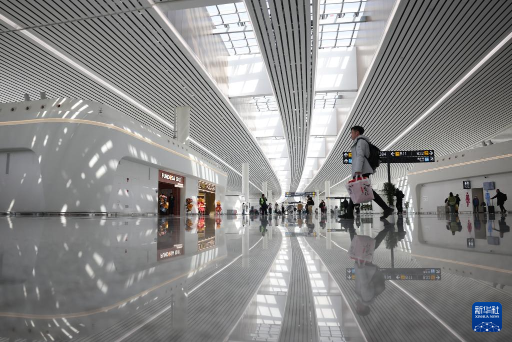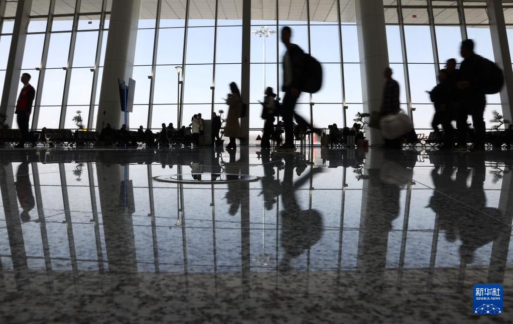 3月20日,旅客在兰州中川国际机场T3航站楼候机区域行走。新华社记者 陈斌 摄