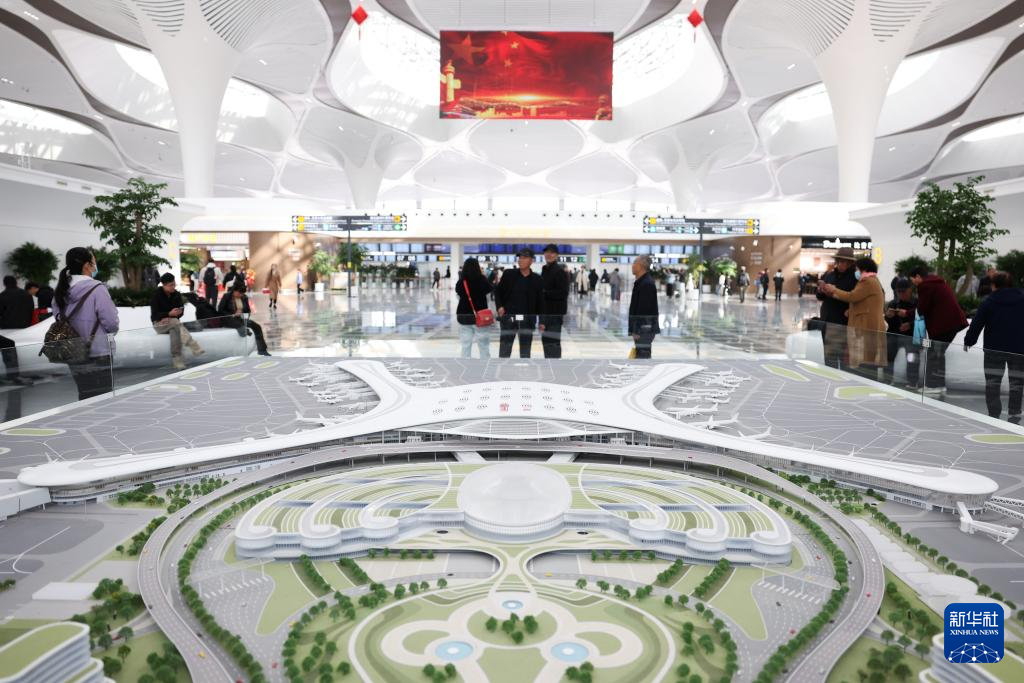 这是在兰州中川国际机场T3航站楼出发大厅拍摄的T3航站楼和综合交通中心沙盘模型(3月20日摄)。新华社记者 陈斌 摄