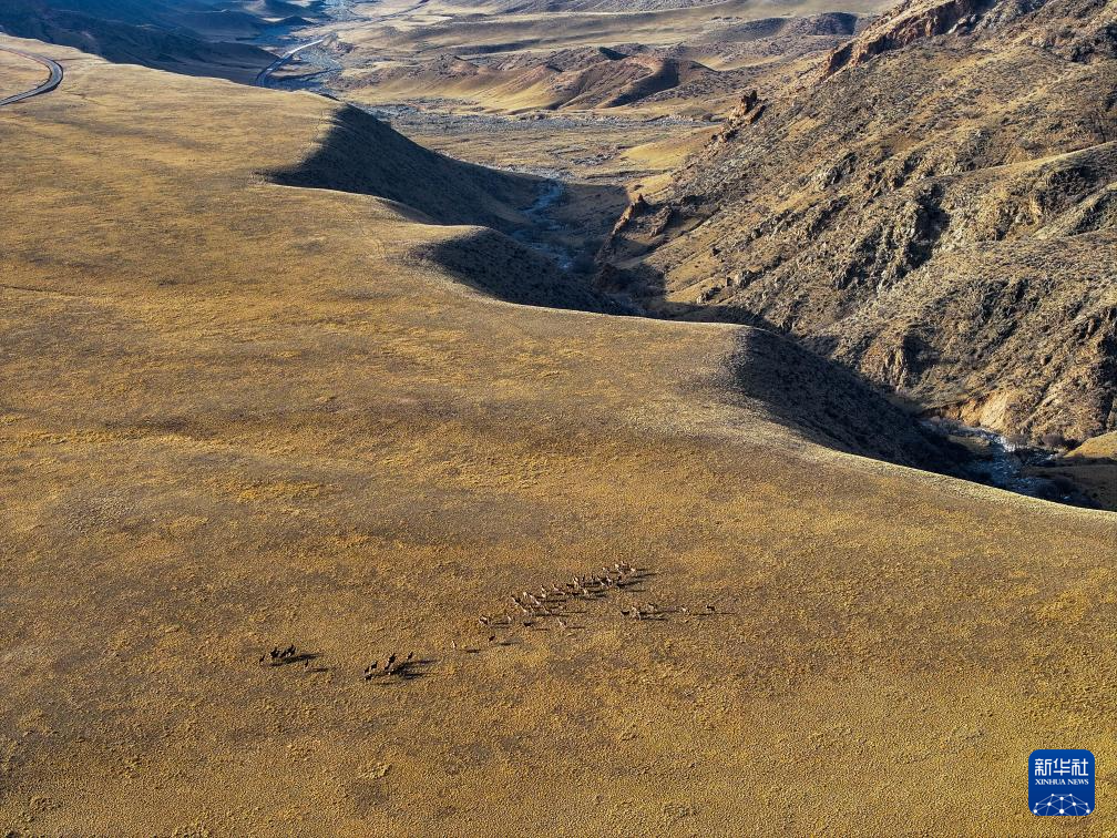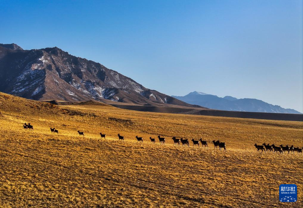 3月19日,在内蒙古贺兰山国家级自然保护区内拍摄的马鹿(无人机照片)。新华社记者 连振 摄