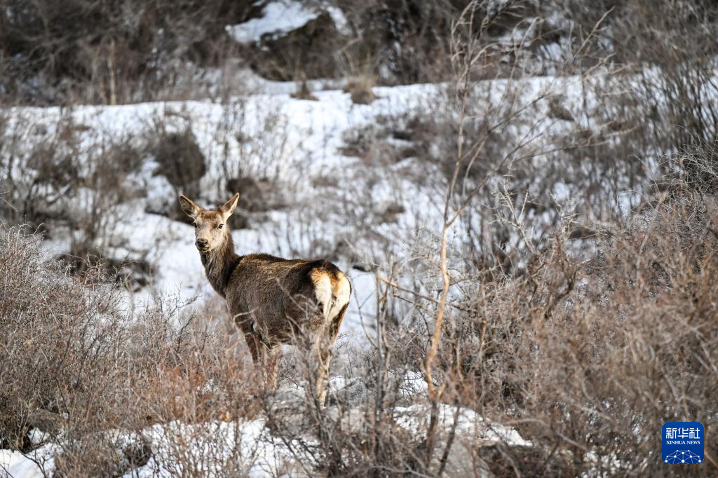 3月20日,在内蒙古贺兰山国家级自然保护区内拍摄的马鹿。新华社记者 连振 摄